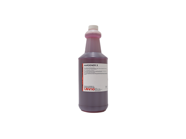 Hardener X is a post-exposure and processing, liquid screen stencil hardener which improves the stencil durability of textile direct emulsions, including 925WR, TZ, LX-630, LX-660 AND QTX ®. For industrial use only.You should not expect to reclaim your mesh after applying a hardener. Hardeners penetrate the stencil and form an additional chemical bond with the mesh that stencil removers cannot break. Ulano hardeners can be used with other textile emulsions, but will make stencil removal more difficult and may embrittle the stencil.